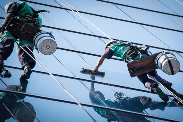 En los servicios ofrecidos en limpiezas por horas, limpiezas periódicas o limpiezas de mantenimiento en cristales y ventanas de cualquier tamaño, contamos con la maquinaria y utensilios necesarios para efectuar trabajos de cualquier envergadura, herramientas como son brazos extensibles o personal limpiador de altura con cuerda, también en ocasiones muy puntuales utilizamos elevadores de altura para llegar a edificios con rincones difíciles.